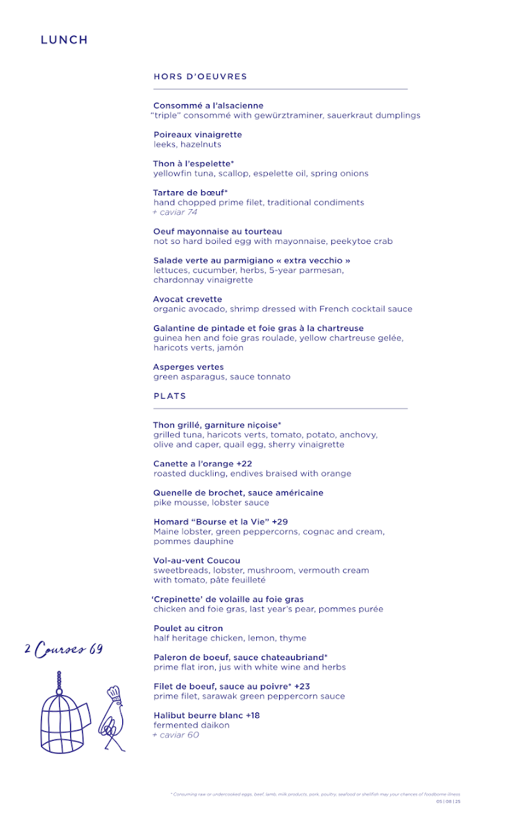 Le Coucou takes pride in offering a menu that showcases classic French cuisine with a modern twist. The Lunch Prix Fixe menu prominently features the delightful Consommé a l’alsacienne, a luxurious "triple" consommé harmoniously mingled with Gewürztraminer and sauerkraut dumplings. For those who indulge in the Dinner Prix Fixe, every morsel becomes an adventure—don’t miss the heavenly Homard grillé aux oignons (grilled lobster with onions) or indulge in the mastery of their Tartare de bœuf with caviar, which has wowed countless guests. The presentations are simply stunning, with vibrant colors and textures that beckon you to dive in and savor each bite.